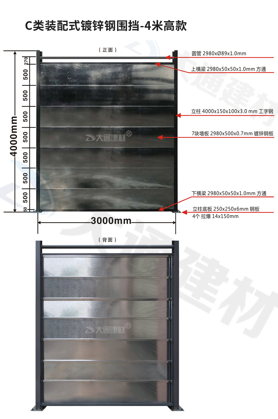 4米高C類裝配式鍍鋅鋼結構圍擋-深圳建筑工程施工外圍圍擋C款-A/B/C類圍擋-深圳市大通建材有限公司鋼圍擋生產定制廠家