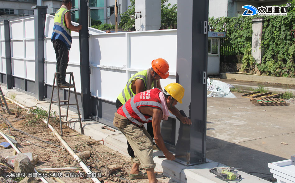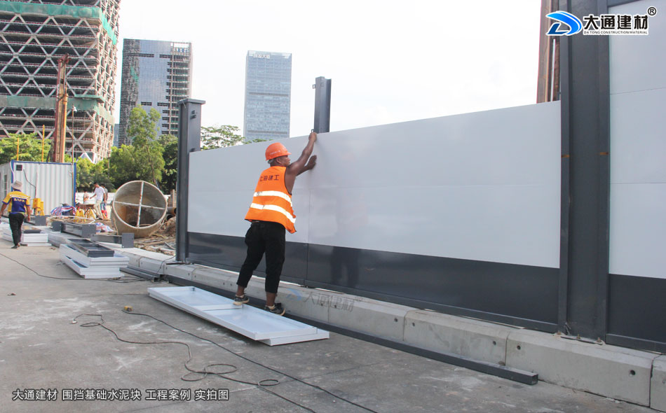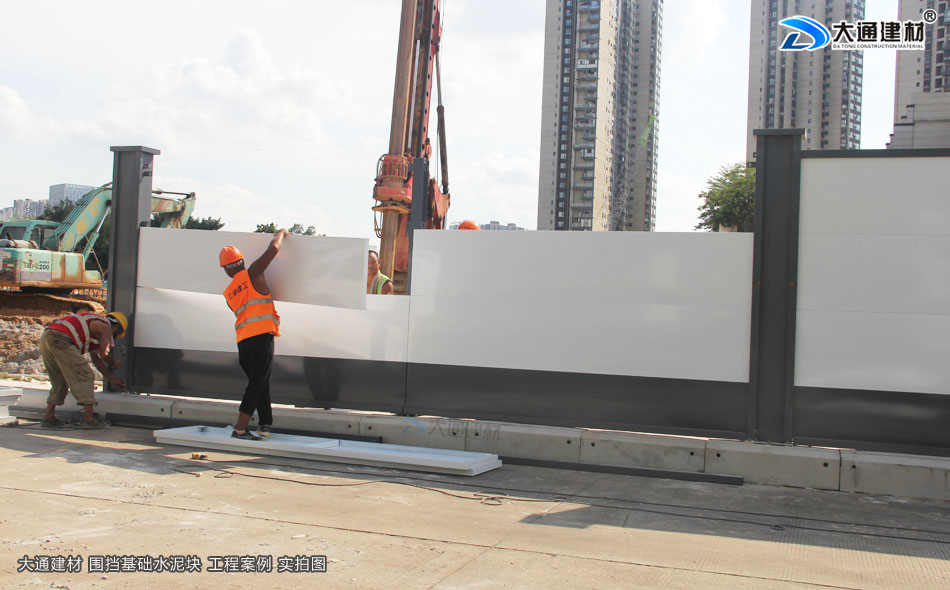 上述展示 深圳市大通建材的圍擋基礎(chǔ)墩與圍擋的安裝過程