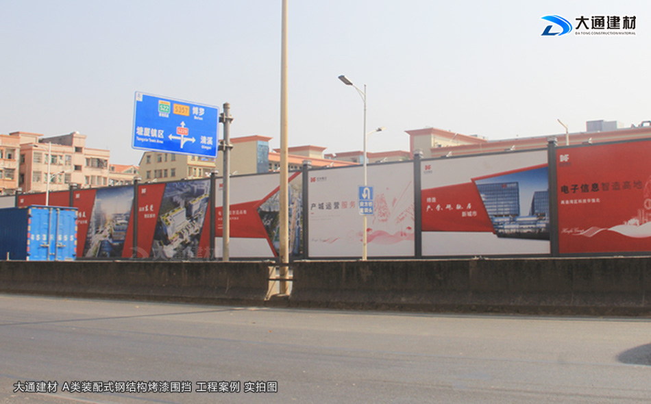 深圳市大通建材有限公司,大格局、通天下! 新型裝配式鋼結構圍擋A款/B款/C款,PVC圍擋,圍擋基礎,工地大門等產品生產廠家電話13826562448