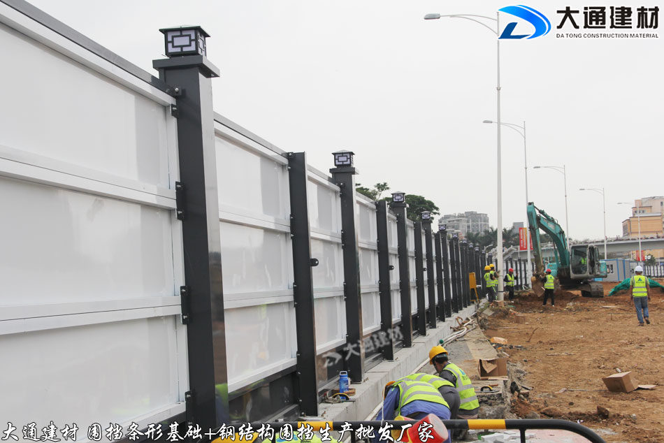 深圳市大通建材有限公司為東莞石龍鎮市政道路施工工程提供圍擋條形基礎+鋼圍擋 批發 送貨安裝等服務