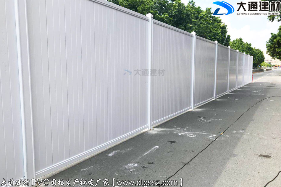 大通建材廠家批發(fā)符合佛山市政標(biāo)準(zhǔn)白色PVC圍擋,PVC圍擋生產(chǎn)源頭廠家,備有充足的PVC圍擋庫存,用戶下單 大通即可安排發(fā)貨,大通PVC圍擋美觀環(huán)保、安全穩(wěn)固、經(jīng)久耐用,在使用中有較好的防護(hù)能力,適合市政道路/地鐵工程/地產(chǎn)建設(shè)等選用。
