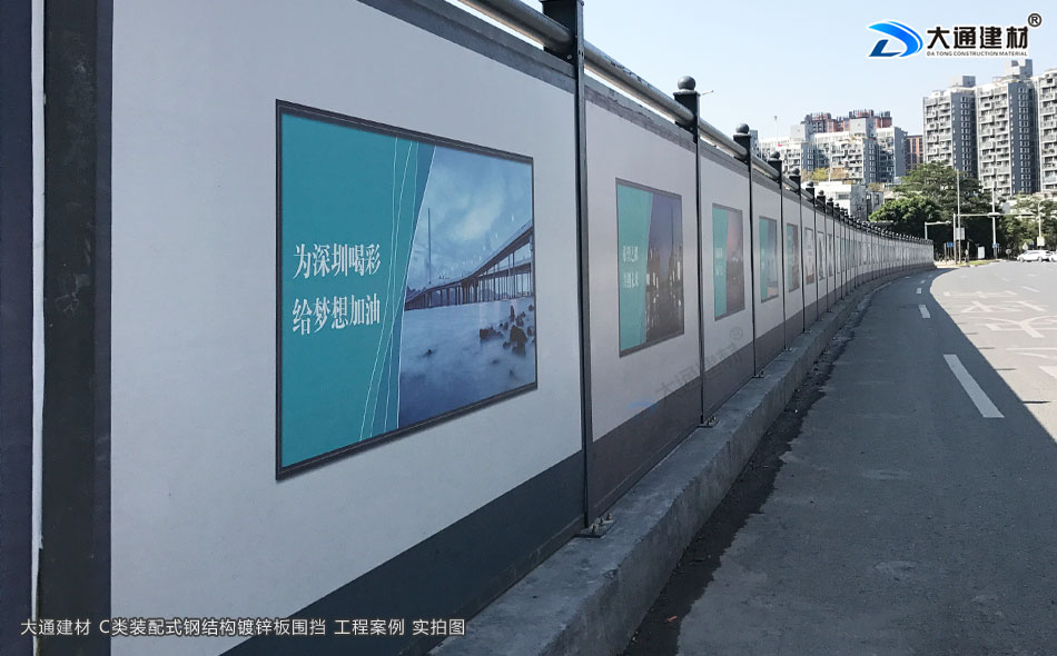 深圳市大通建材有限公司,大格局、通天下! 新型裝配式鋼結(jié)構(gòu)圍擋A款/B款/C款,PVC圍擋,圍擋基礎(chǔ),工地大門等產(chǎn)品生產(chǎn)廠家電話13826562448