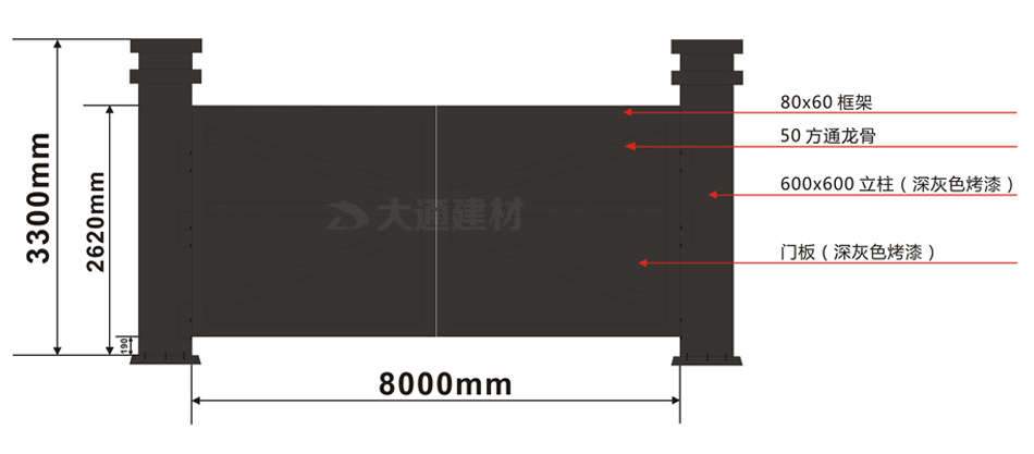 大通鋼結(jié)構(gòu)烤漆款標(biāo)準(zhǔn)工地大門(mén)款式二)規(guī)格參數(shù) 如下圖