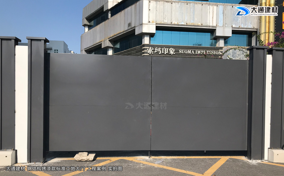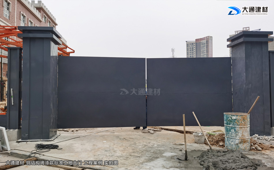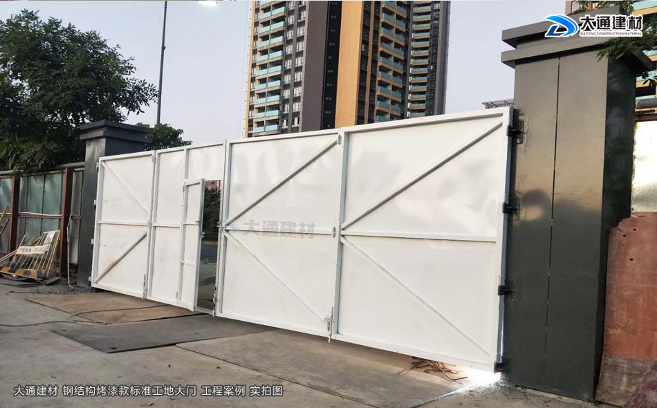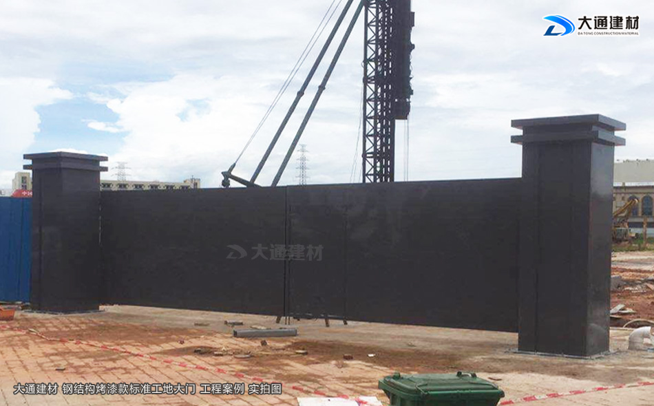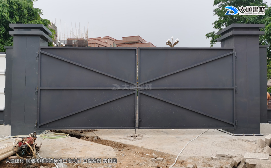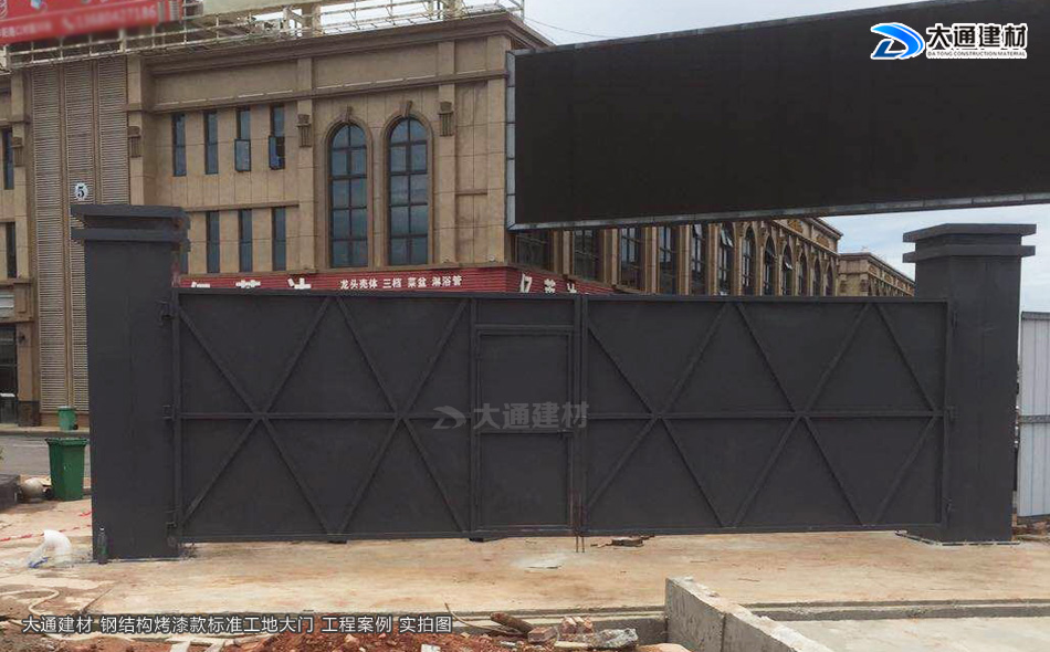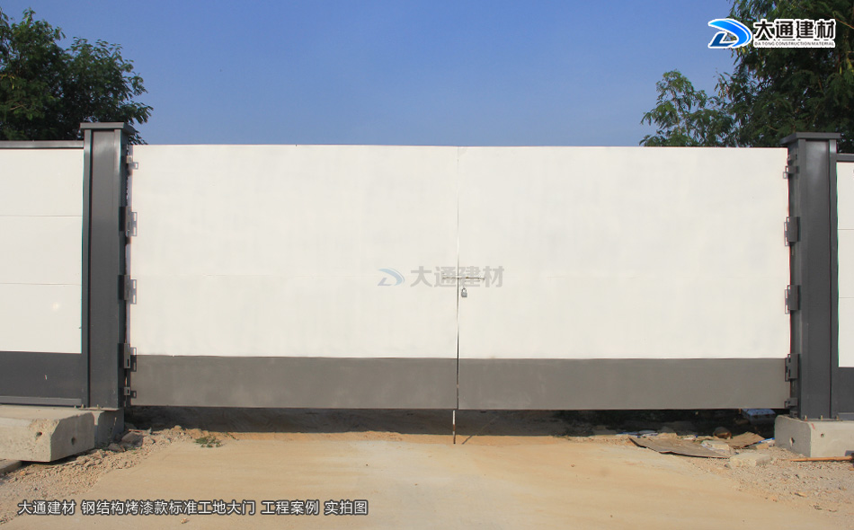 我們知道現(xiàn)在市政要求基本上每一個(gè)項(xiàng)目施工工地現(xiàn)場(chǎng)都需要安裝圍擋護(hù)欄后,方可施工,而施工現(xiàn)場(chǎng)工地大門(mén)基本是伴隨著施工圍擋存在的。今天大通小編與大家看看大通鋼結(jié)構(gòu)烤漆款標(biāo)準(zhǔn)工地大門(mén)有哪些款式