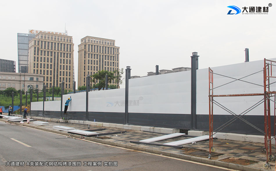 大通建材A類裝配式烤漆鋼結構圍擋4米高定制款安裝中 如上圖/下圖展示