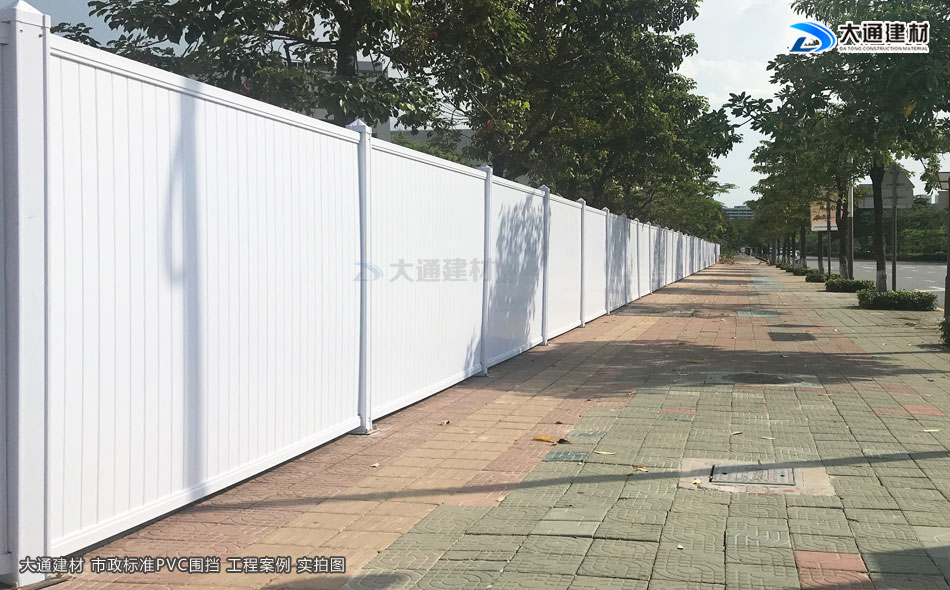 在市政項目建設工程中不可或缺的一個環節是開始施工前的市政施工圍擋的設立。施工場所施工時會存在一些安全隱患,而設立了市政圍擋就可以起到了一定的隔離危險,安全防護作用。常用的市政施工圍擋有市政標準PVC圍擋、鋼結構圍擋這兩個款式,而深圳市大通建材有限公司專業生產批發符合深圳、廣州、東莞、惠州等城市的市政標準的施工圍擋,品質有保障,貨源充足,圍擋源頭廠家直接銷售,沒有中間商賺差價,圍擋價格更便宜。